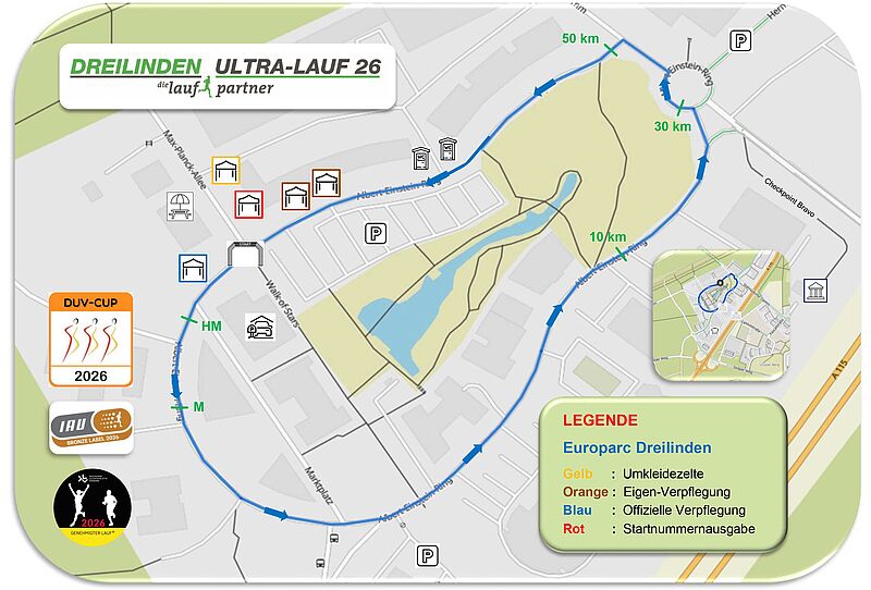Der Wettkampf wird auf dem ꞌFuß- und Radwegꞌ des ꞌAlbert-Einstein-Ringꞌ durchgeführt und weist einen Höhenunterschied von 1 Meter auf. Bei Straßenübergängen wird um Vorsicht gebeten, ansonsten findet die Veranstaltung nach den ꞌInternationalen Wettkampfregelnꞌ (IWR) und der ꞌDeutschen Leichtathletik-Ordnungꞌ (DLO) statt.